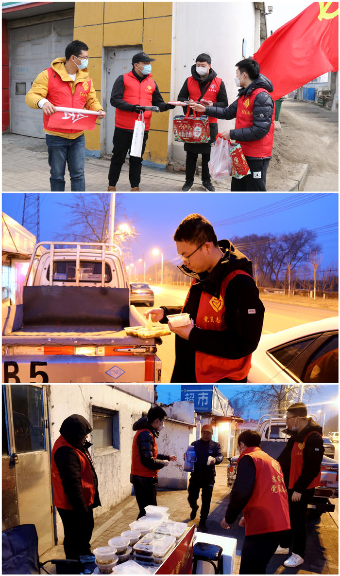 民主街道的工作人員為志愿者們及時(shí)送餐,保證大家吃上一口熱乎飯;工業(yè)公司黨支部為志愿者們準(zhǔn)備了手套、暖寶寶、口罩等物品,滿足大家御寒需要。